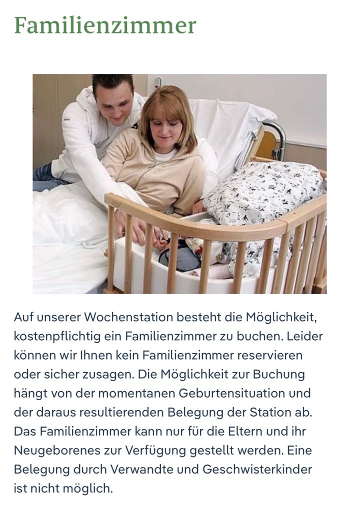 Ovviamente questo non è sempre possibile negli ospedali tedeschi e costa un sovrapprezzo che però secondo me vale la pena pagare.